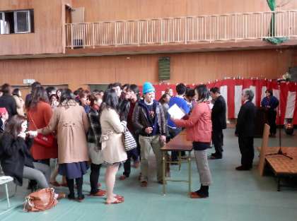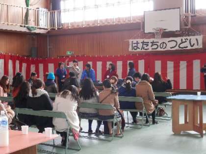 タイムカプセル開封、二十歳の自分へのメッセージを先生方から手渡され、苦笑いで読んでいました。そして、ビンゴゲームをして、最後に全体の集合写真をとりました。