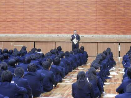 3年生では、24日の私立高校出願に向けての事前指導を体育館で行いました。