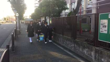 生徒会の人たちが、朝早くから学校の周りを清掃し、美化活動に取り組んでくれています。