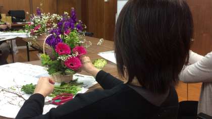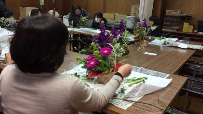 9月8日から開催しました教室も今回で、今年度最後になってしまいました。参加した保護者の方々から、次は自分で花を選んで活けたいなど、先生にお礼の言葉がありました。