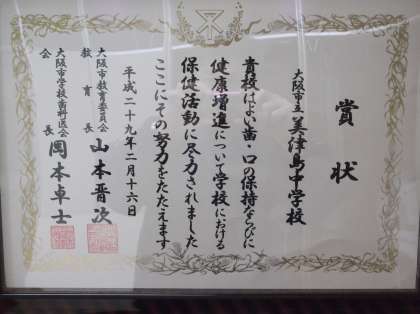 また、本校が歯と口の健康についての取組が評価され表彰されました。