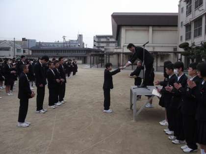 本日、全校朝礼にてあいさつ運動と漢字検定の表彰がありました。