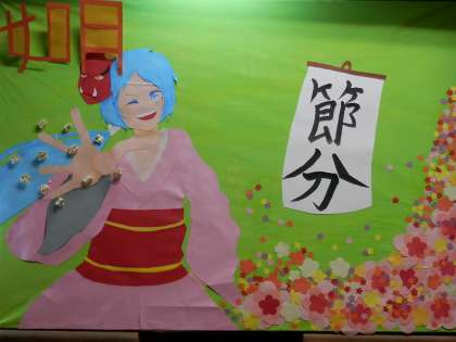 美術部員が毎月作製しているモニュメントが2月バージョンに入れ替わりました。