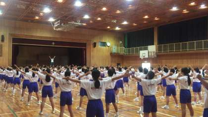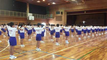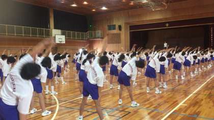 今日は全員で、一つ一つ動きを確認しながら、ラジオ体操を練習しました。