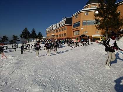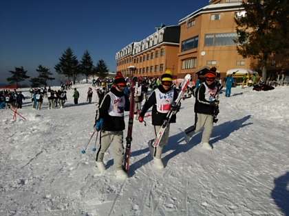 到着後、すぐにゲレンデへ出て開校式を済ませスキー講習中です。