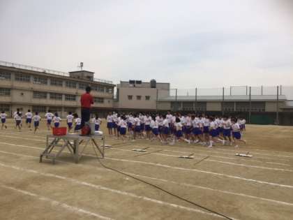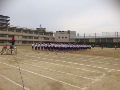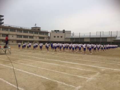 まず入場の練習をし、その後体操隊形に開く練習、最後は退場の練習をしました。
