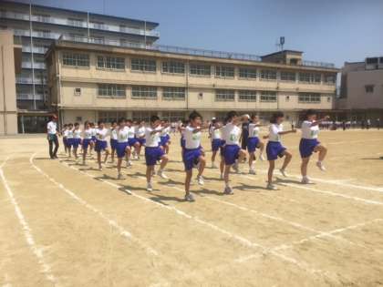 本日午後から、全校生徒で体育祭の全体練習をしました。