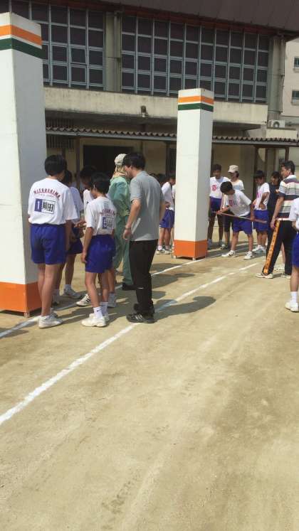 生徒のみなさんは、半袖体操服、ハーフパンツの上に