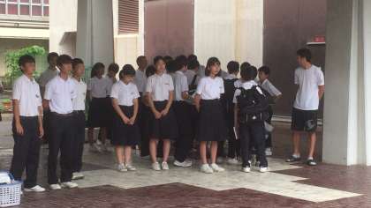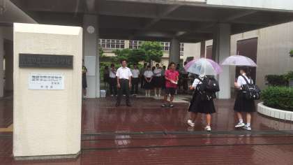 雨の中ですが、風紀委員が中心となり、全生徒が心のこもった、