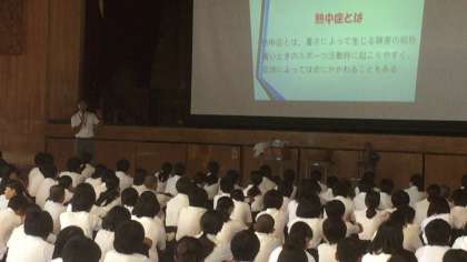 クレーマージャパンの方に講師を依頼し、熱中症の原因と症状、対処の仕方について説明していただきました。