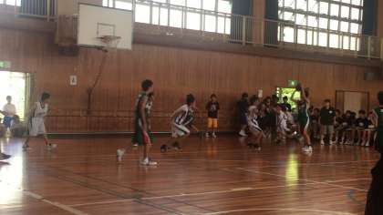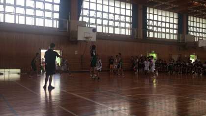 美津島中学校男子バスケットボール部の生徒も、暑い中一生懸命にプレイしています。