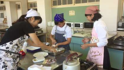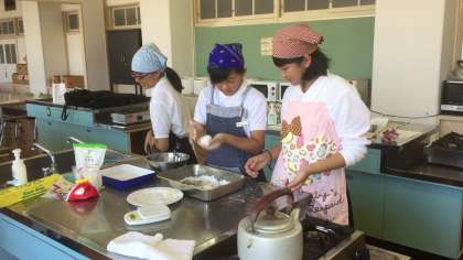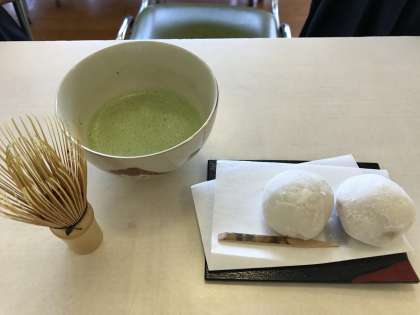 調理室で、和菓子をつくった後、お抹茶とともに、おいしくいただきました。