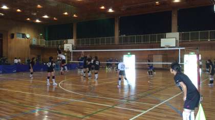 写真上段は、バレーボール部・下段は、サッカー部の活動の様子です。