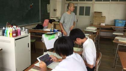 1限「オリジナルTシャツをつくろう」(写真上・中段)