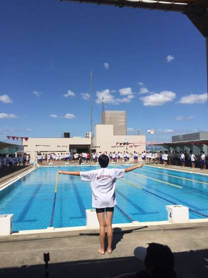 開会宣言、選手宣誓、諸注意のあとラジオ体操です。