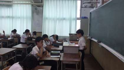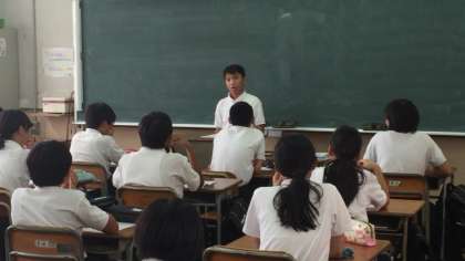 本日1年生は夏休みの課題「職業調べ」の発表を、各クラスで行いました。