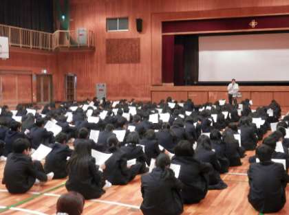 1年生で5月に予定している一泊移住について、生徒対象の1回目の説明会が行われました。4月2日に下見をした内容について、ビデオを利用し、説明を行いました。これから、様々な取り組みが始まります。