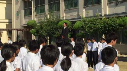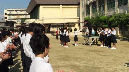 大阪市秋季総合体育大会 女子団体の部で第3位となった卓球部の表彰に続き、校長先生からのお話、生徒会役員からの週連絡などがありました。