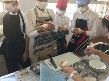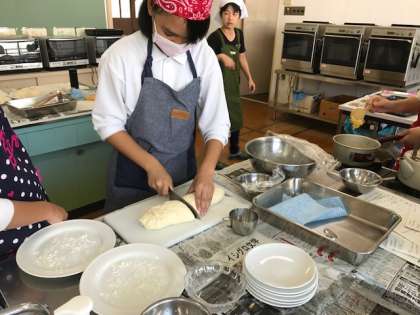 10月10日(火)、『2年生調理実習』で『卵を使わないパン作り』を行いました。