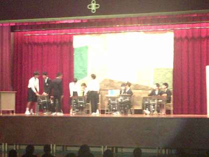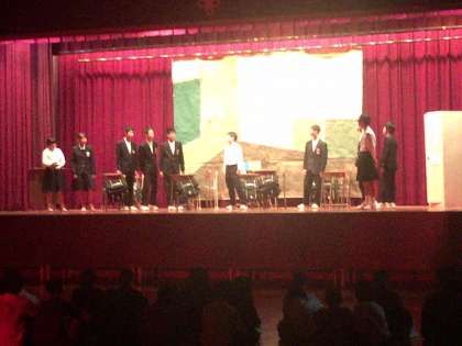 1組の発表「書きかえられた記憶〜互いの個性を認め合う〜」です。