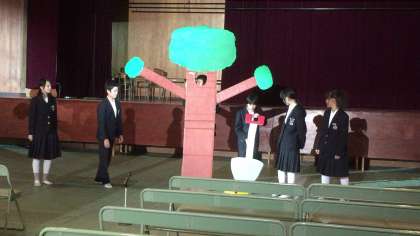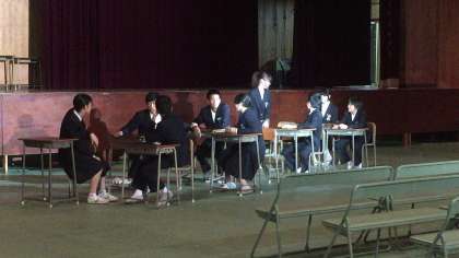 文化祭(10月27日(金)実施)の会場準備を10月25日(水)6限に2年生で行いました。放課後には、リハーサルを実施しています。