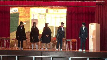 写真は、1年生(学習発表)・2年生(クラス劇)の様子です。