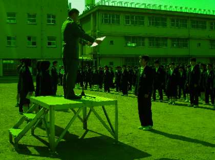 認証式に続いて、部活動で表彰を授与しました。この連休中にも、各部活動では熱心に活動が続けられました。男子のバスケットボール部では、大阪市のベスト8まで勝ち進みましたが、4日の試合で残念ながら三稜中学校に惜敗しました。
