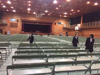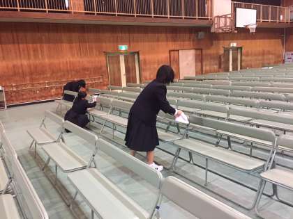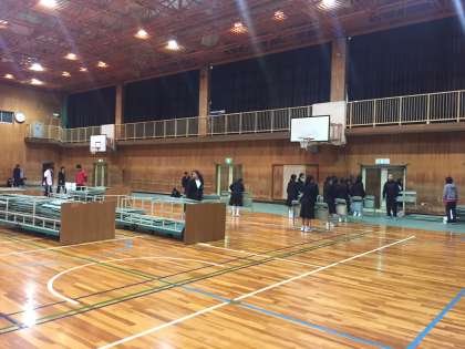 本日3・4限3年生、5限2年生が、明日の70周年記念式典の会場準備で体育館の設営をしてくれました。
