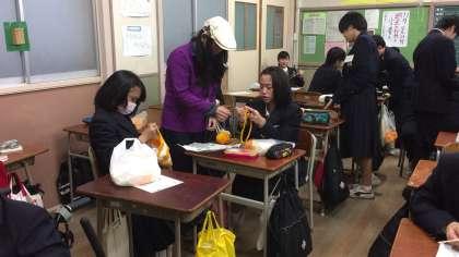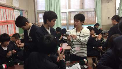 11月14日(火)6限、2年生は、スキー修学旅行の取り組みとして、毛糸で帽子を編んでいます。