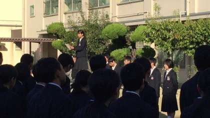 続いて、生活面のお話があり、生徒会役員が、週の行事連絡をして終わりました。