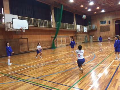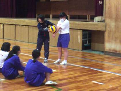 バレーボールのオーバーハンドパス、アンダーハンドパスの学習をしています。
