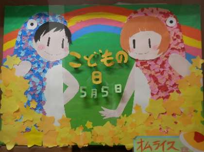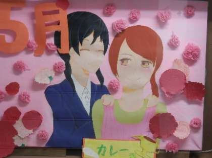 美術部が毎月製作しているディスプレイ。5月は、子どもの日と母の日に合わせて製作されました。