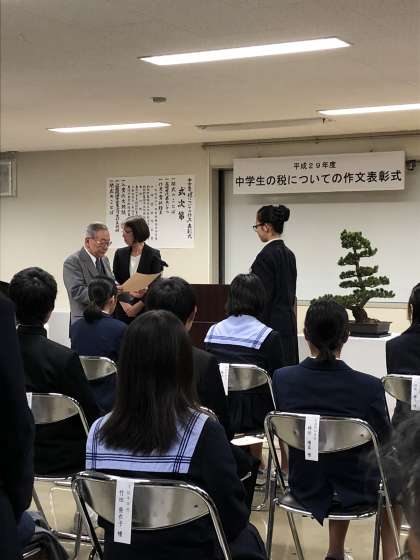 本日、東淀川納税協会で『中学生の税についての作文』の表彰式が行われました。