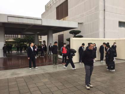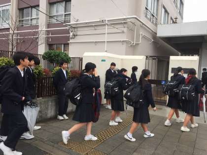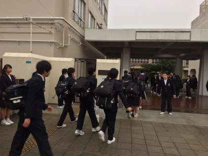 寒い中、風紀委員や生徒会執行部の人が正門に立ち、大きな声で「あいさつ」をして登校する生徒を出迎えています。