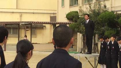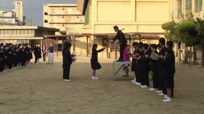 まず、先週の『あいさつ運動』の優秀学級・部活動の表彰がありました。