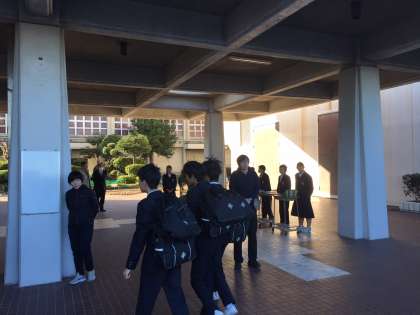 本日は冬型の気圧配置になり、この冬一番の冷え込みの中、生徒たちは元気に登校しています。