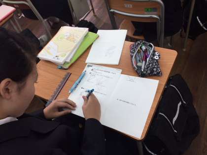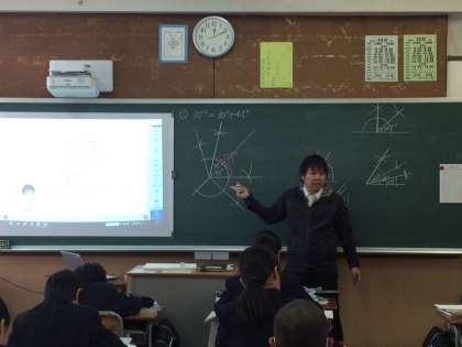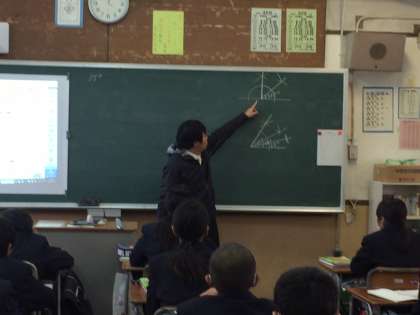 垂線の書き方で90度や正三角形から60度を作図し、そこから半分の角度の求め方を習い、角度を組み合わせて、指定された角度の作図を行いました。