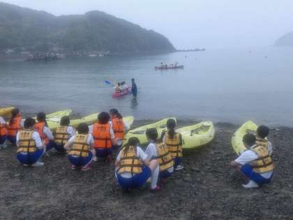 雨が少し降っていますが、体育館で説明を受けた後、海の活動に入りました。