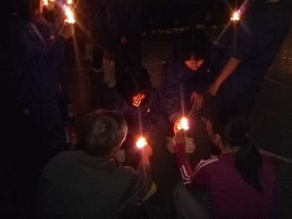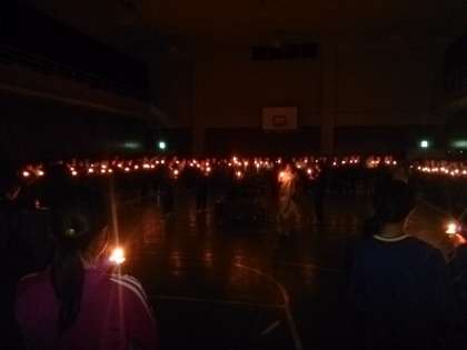 キャンドルファイヤーをしました。キャンドルの分火を繰り返し、一つの輪になり、心ひとつになりました。