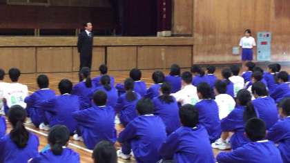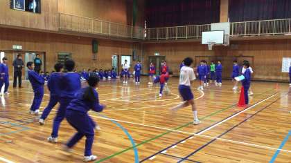 開会式、準備体操の後、ドッジボールをクラス対抗で競いました。