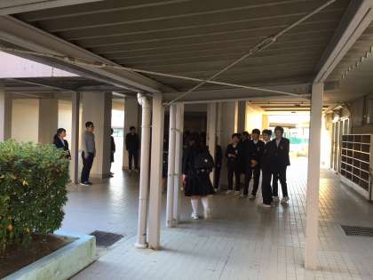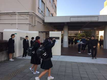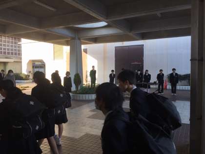 正門や階段付近等で、風紀委員会や生徒会、部活動の人たちが元気に挨拶をしています。
