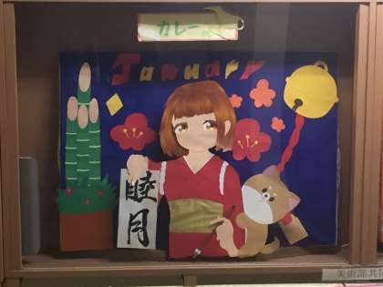 本日美術部制作の、1月分ディスプレイが展示されました。
