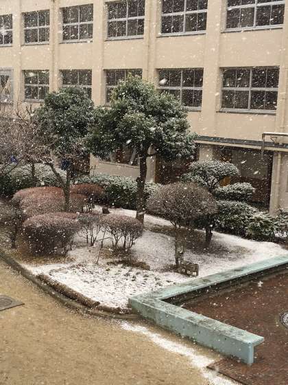 本日午後から少しずつ雪が降り始め、4時頃に強くなりました。