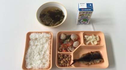 2月2日(金)、本日の給食は、『節分の行事献立』で、「鰯のかば焼き」・「豚肉とさといもの煮もの」・「カリフラワーの柚子の香あえ」・「福々豆」・「はくさいのすまし汁」・「米飯」・「牛乳」をしっかり喫食しました。