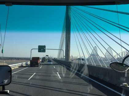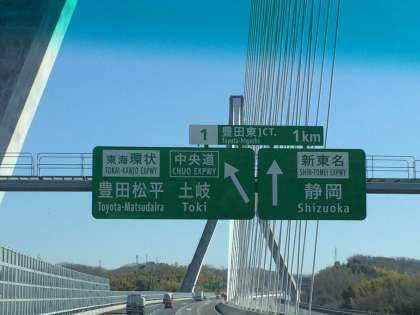 東名阪道から伊勢湾岸道を通って東海環状道経由で中央道に入ります。