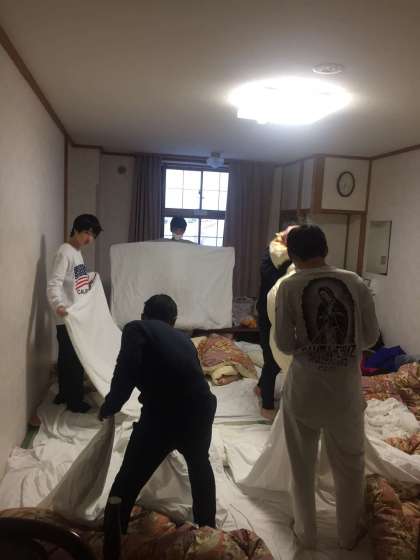 本日は最終日なので、布団の片付けをして、整理と帰る準備をしています。