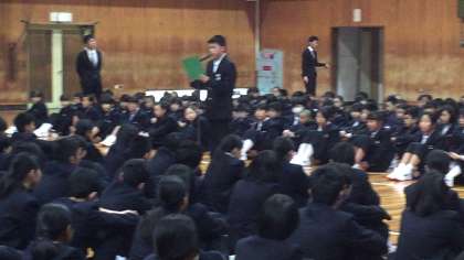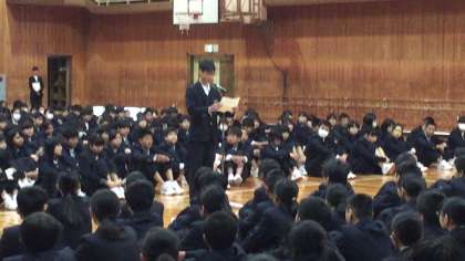 生徒会執行部からの開会宣言に続き、新入生代表のあいさつ、在校生代表のあいさつがあり、最後に閉会宣言で終わりました。