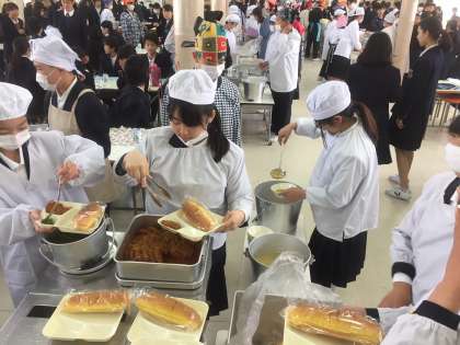 今年度より学校調理の給食になり、配膳等少し時間がかかりましたが、美味しい給食をいただきました。