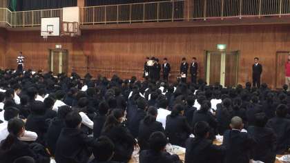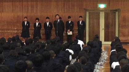 最後に、生徒会役員から週の行事連絡をして、全校集会を終えました。