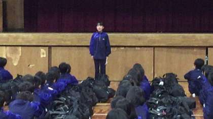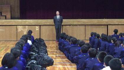 校長先生のあいさつの後生徒代表のあいさつ、最後に学年主任の上田先生から諸注意がありました。